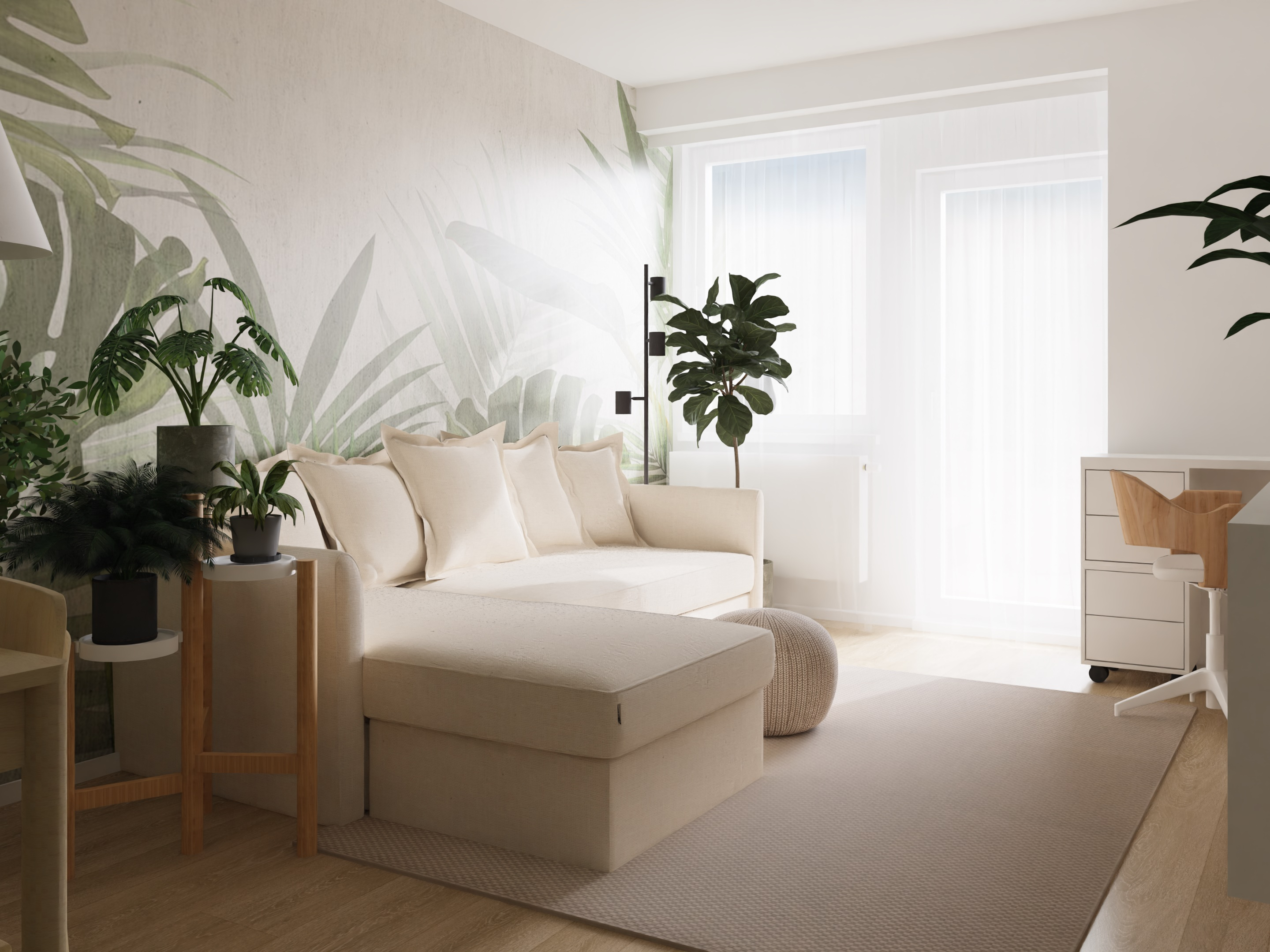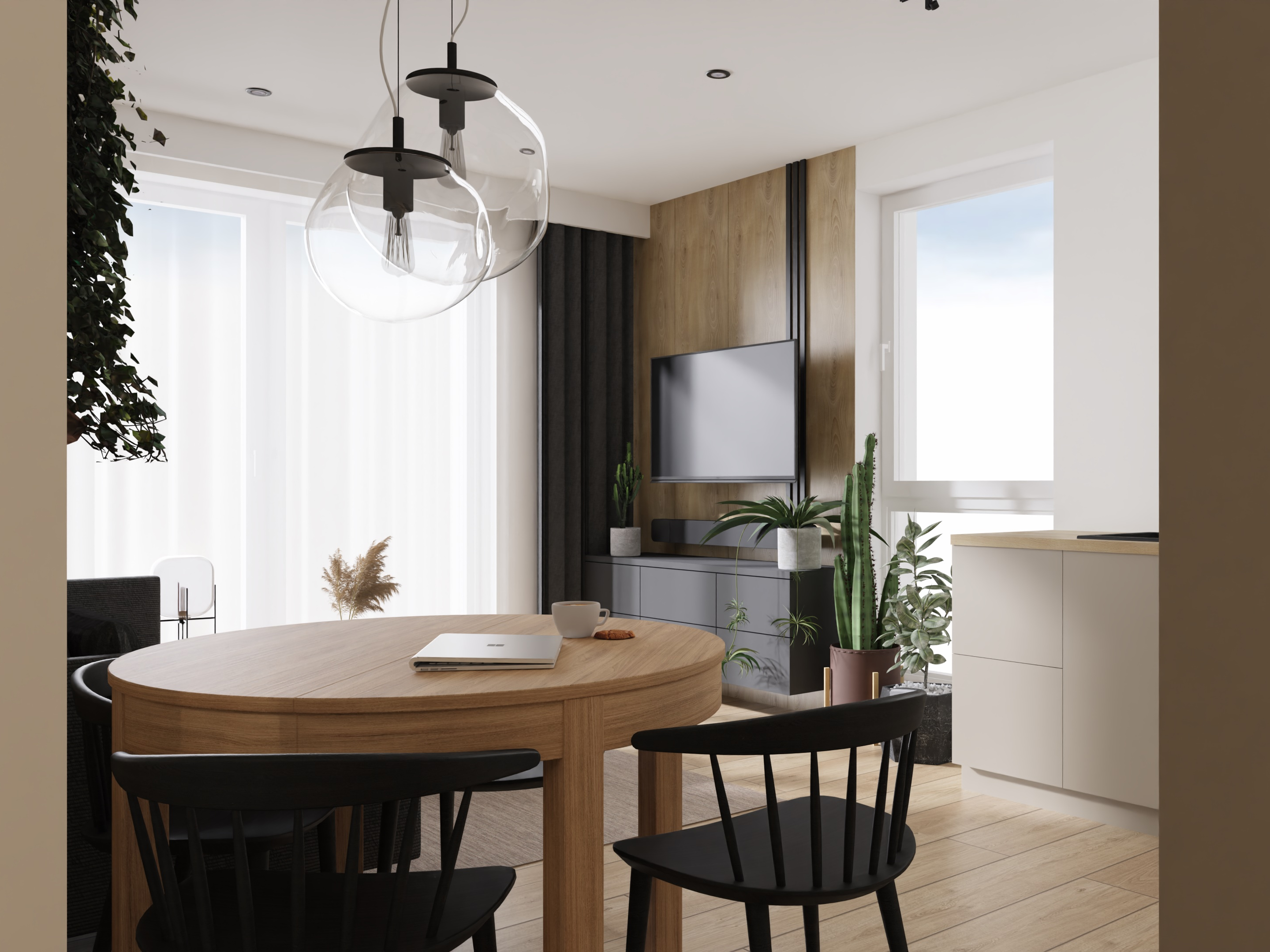 Mieszkanie zaprojektowane w stylu Urban Jungle na Warszawskim Służewie. Mieszkanie utrzymane w jasnych tonacjach. Dużo bieli, zieleni oraz drewna. Dobry projekt musi uwzględnić potrzeby klienta i budżet. Projekt udał się między innymi dzięki melbom IKEA, które mają wspaniały design.